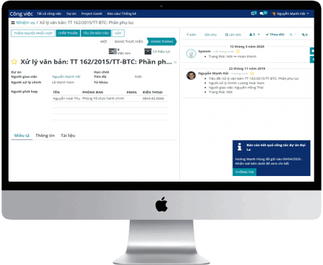 • Tích hợp như gửi email thông báo tự động, cảnh báo thời hạn công việc