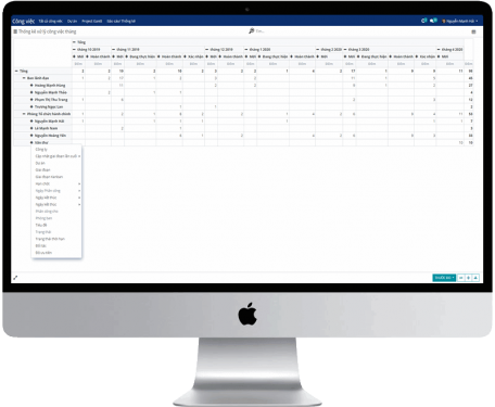 • Phân tích Pivot Table: Sử dụng bảng xoay vòng trên các tác vụ để thực hiện phân tích thống kê sâu về năng suất của các dự án.